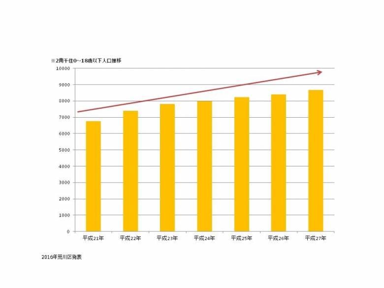 同じ荒川区内の中でも、南千住は0~18歳以下の人口推移がずば抜けて多く、過去7年間の間で1,893人もの増加があったと発表がありました。再開発によって大型商業施設やタワーマンションが立ち並び、つくばエクスプレス、JR常磐線、日比谷線の3路線が利用可能な南千住は、生活利便性の高さ、交通アクセスの良さからも子育て世代に人気のエリアだということが見えてきます。※2