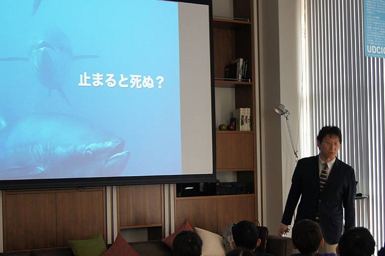 2月13日(土)にはUDCK(柏の葉アーバンデザインセンター)で、クロマグロは海の中でどういった一生を送っているのかを学ぶカリキュラム「マグロはおもしろい」が開催されました。
