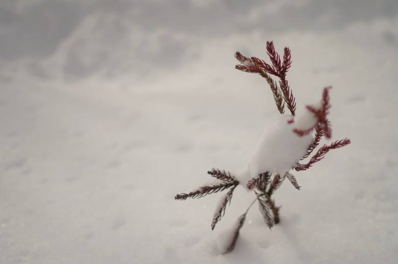 続いて、弱層探し。雪は日夜層を成して積もります。枝の多い結晶はお互いに絡み合って締まった層を作りますが、雹(ひょう)のように枝を持たない結晶からなる層は結びつきが弱いため、雪崩の原因になります。積雪の断面に色付きのスプレーを吹きかけると、層内での結びつきの強さに応じた模様ができます。そこで雪崩の原因ともなる弱層を、色の濃淡から探し出します。指で突っついたり、小さな雪崩を起こしてみたりと工夫しながら、雪の層から見えてくる苗場の天候の歴史を紐解いていました。