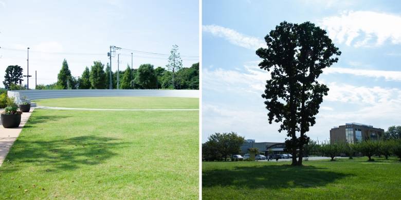「かしわのはらっぱ」(写真左)と千葉大の広場(写真右)。気持ちよさそうです。