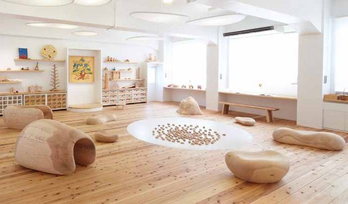 やさしい手触りのおもちゃをはじめ、床や壁、ベンチには全国10の地域の杉材が使われているそうです!