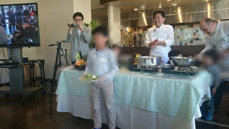そんな中、奥田シェフから一緒に料理を体験させてもらえる子どもたちの募集の声がかかり、いつも恥ずかしがり屋で決して手をあげない息子がなんと参加を決意してくれました。