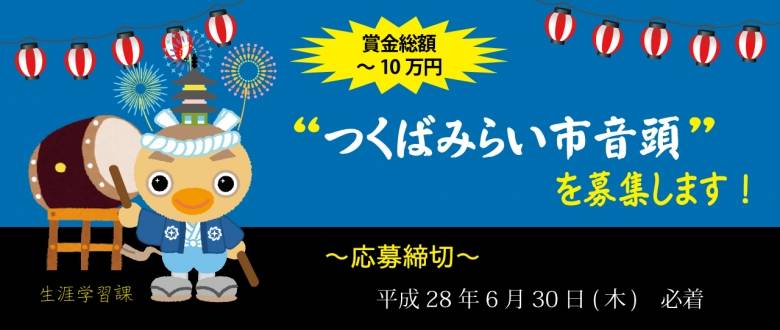 『市制施行10周年を記念し,市内各地域や各層各世代の市民の更なる一体感の醸成及び,“みらい”にわたって歌い継がれることで郷土愛の高揚を図るため,子どもから高齢者までが歌って踊って楽しめる「(仮称)つくばみらい市音頭~夢つなぐみらいへ~」を制作することになりました。