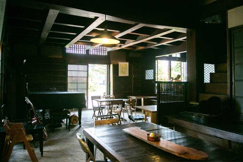 土間にはピアノやドラムなどの楽器が置かれており、月に一度は演奏会が行われているそうです。