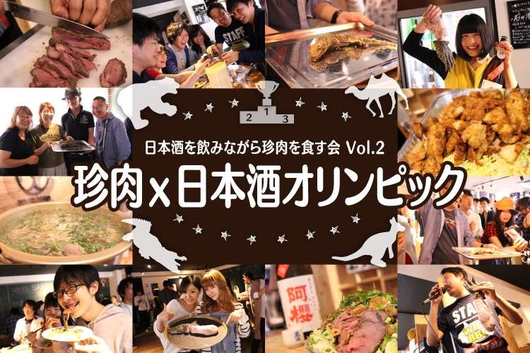 「日本酒を飲みながら珍肉を食す会 Vol.2 ~珍肉x日本酒オリンピック~」は、普段では絶対に食べることのない、「珍しく」「怪しい」珍肉を、100種類の日本酒を飲み比べながら楽しむ、食と日本酒のイベント。普段は口にすることない珍肉と日本酒との組み合わせを楽しむことで、未だかつて味わったことのない体験ができるかもしれません!