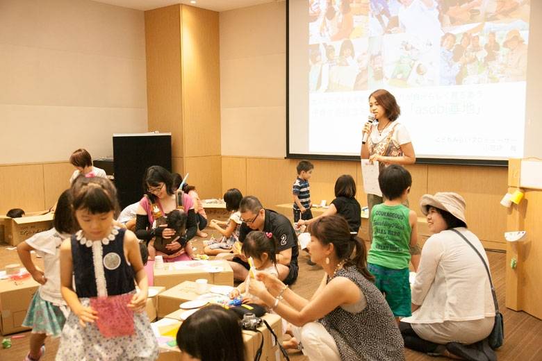 このような子育ての方法を提案し、「子どもが遊びながら学べて、さらに大人にも発見や学びのある場所」を作っているのが子育てコミュニティ「asobi基地」です。7/19(日)・20(月・祝)に柏の葉キャンパスで開催された「マナビーヤ!フェスタ」での実施の様子をご紹介します。