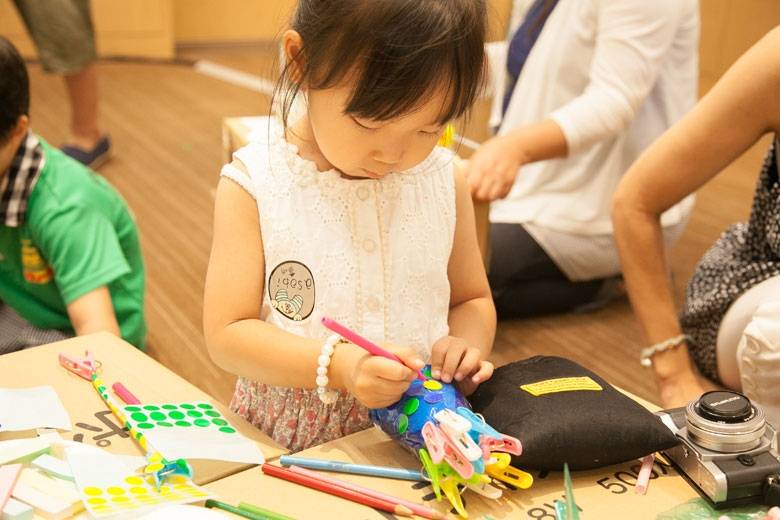 そして親子の前に用意されるものは、紙コップや紙皿、ストロー、洗濯バサミなど、どこででも手に入るような、簡単な素材。この素材を使って、子どもたちに好きなものをつ くらせます。どんな素材をどんなふうに使ってもOK! 子どもが自由に素材で遊んでいる間、親には “行動観察シート”が配られ、子どもがどんな様子で遊んでいるかを記録してもらいます。そして「子どもに『これはこう使うもの』と伝えないからこその発見 がある」とか「まだ○才だから工作はできない、と思いこまない」「こういうものを作らせたい! という気持ちを抑えて待ってみる」といった子育てのヒントをレクチャーしていきます。