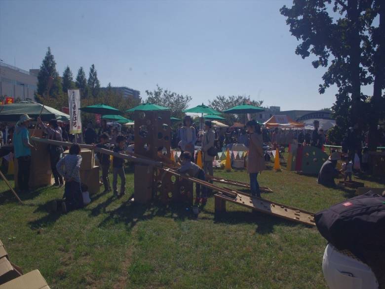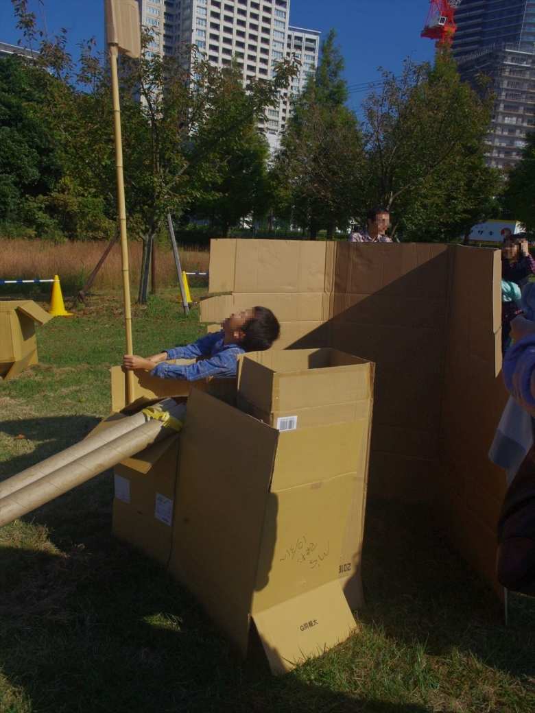 昼前には会場にはダンボールの秘密基地が立ち並び、その横の屋台会場から昼食を買ってきて秘密基地でランチを取っている家族も見かけました。