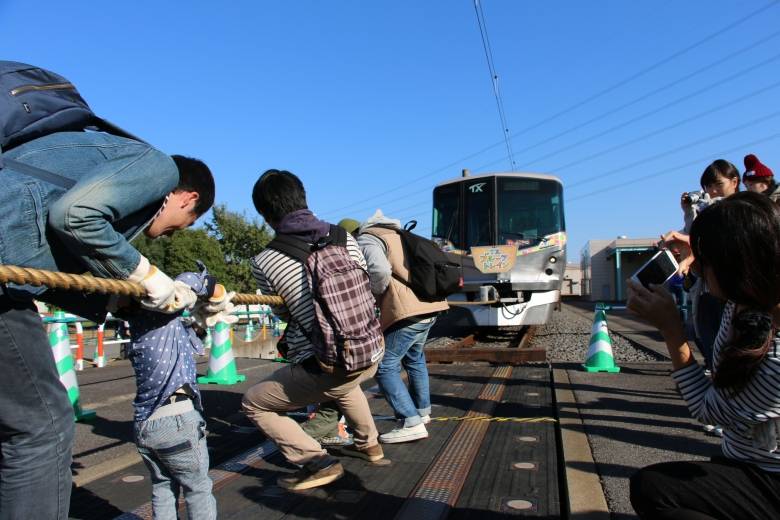 つくばエクスプレスまつりでは、子供達だけではなく、大人も楽しめる仕掛けがいっぱい。つくばエクスプレスの車両を親子で引っ張る「電車と綱引き」やつくばエクスプレスのイメージキャラクター「スピーフィー」との記念撮影ブースでは親子で楽しむ姿が目立ちました。