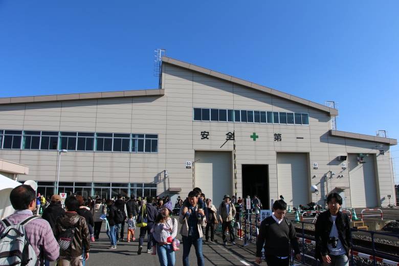 昨年から公開を始めた「車両工場見学」は今年も大盛況。正門から徒歩15分と、やや離れた場所に位置する会場ですが、入場まで列を作るほどの大盛況。
