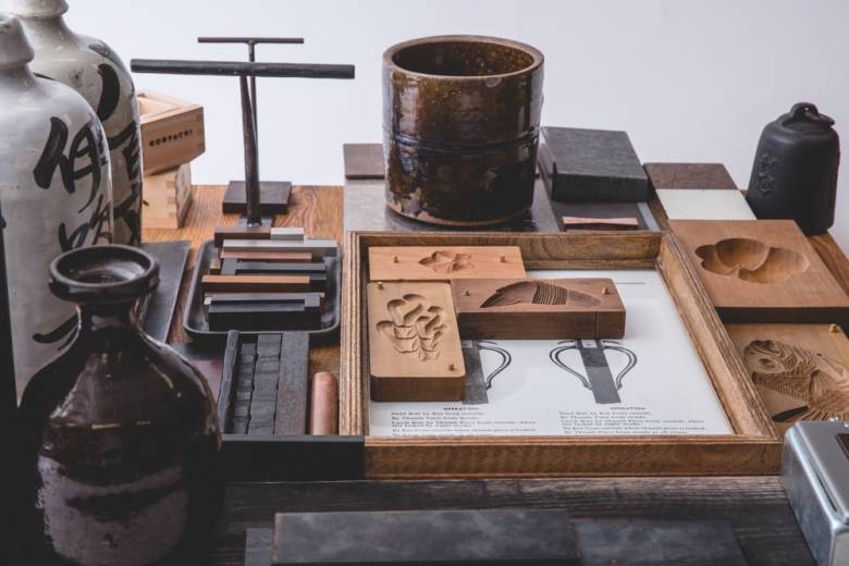 2階建て約71.86坪の店内は、銅や古材などの自然素材を使用。1階には樹齢200年を誇る九州の銘木楠、2階にはタモを使用したコの字型のカウンターが中央に配置されます。