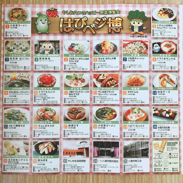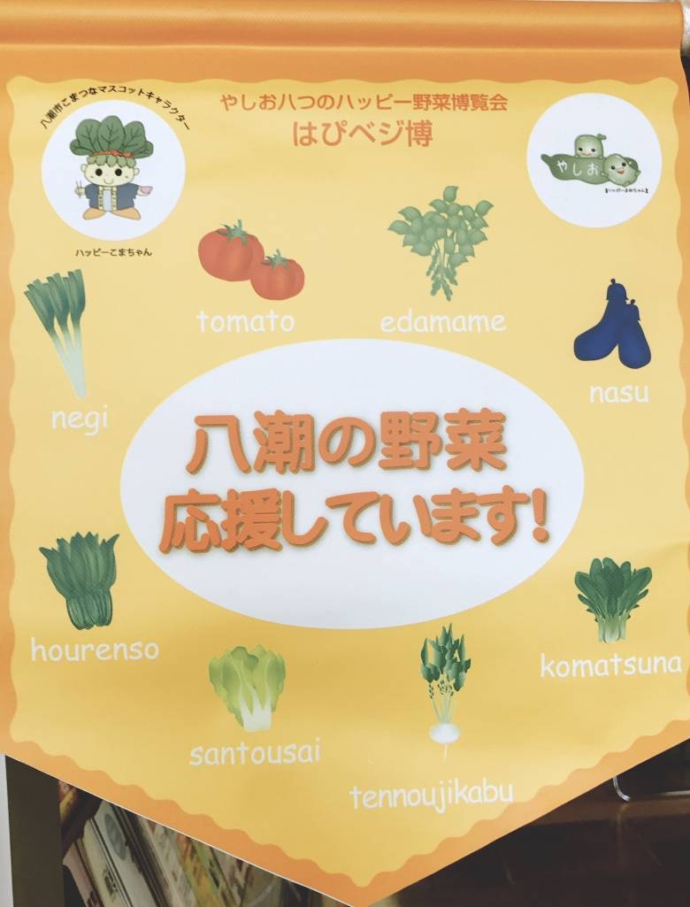 小松菜、枝豆、ネギ、ほうれん草、トマト、ナス、山東菜、天王寺カブの八つの八潮産野菜が「はぴベジ」です。