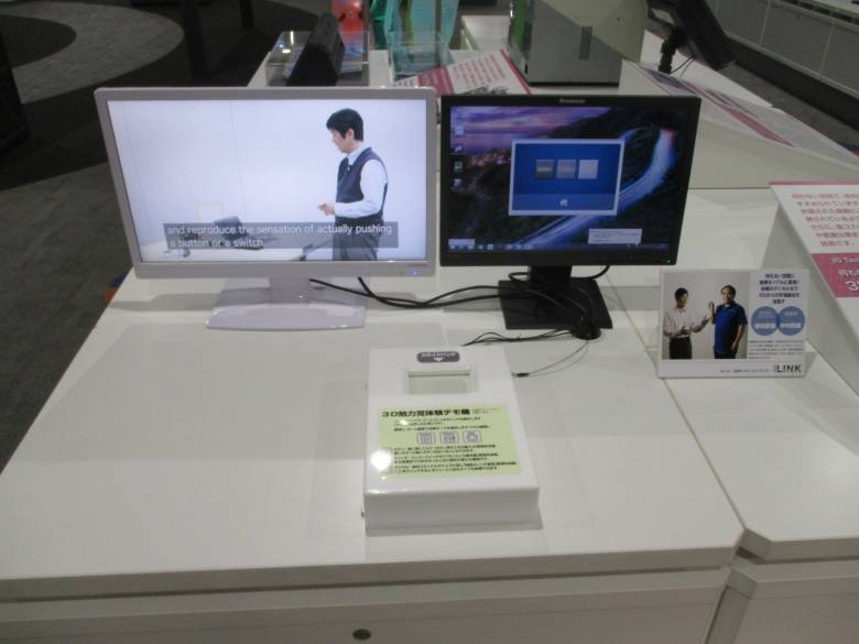 体験ができる展示物もあり、「3D触力覚技術」のデモ機では、同じ平面を指で押しているのに、ボタンのように感じたり、ダイヤルを回しているように感じたりと不思議な体験をすることができました。