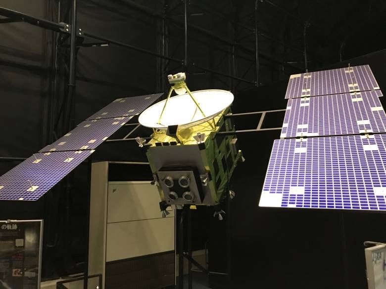 月周回衛星「かぐや」の模型をはじめ、映画にもなった小惑星探査機「はやぶさ」の2分の1スケールモデルの展示もされていました。
