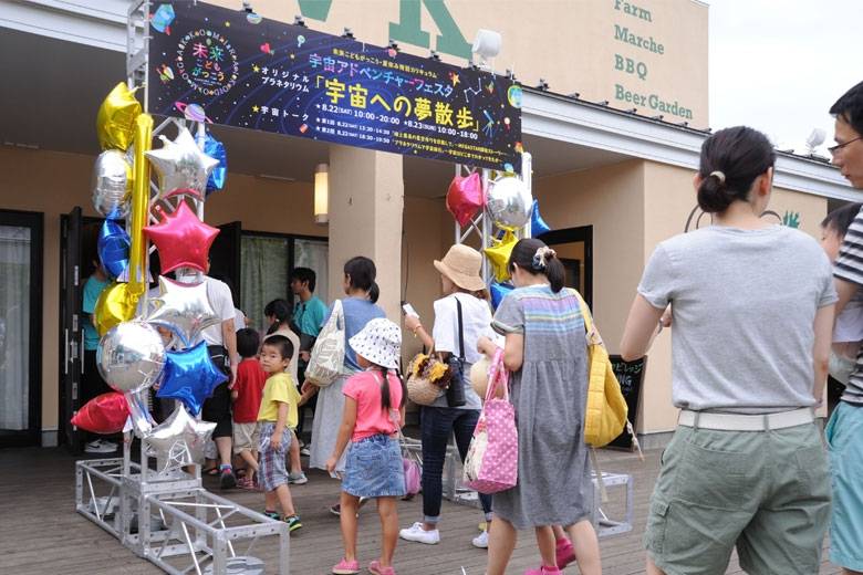 「宇宙アドベンチャーフェスタ」では、いくつものワークショップやイベントが開催されましたが、プラネタリウムクリエーターの大平貴之さんが登場した「宇宙トーク」もその中の一つです。冒頭の言葉は、この大平さんが語った言葉。会場は、体験型農場をテーマに食と農の未来を提案している「オークビレッジ柏の葉」。
