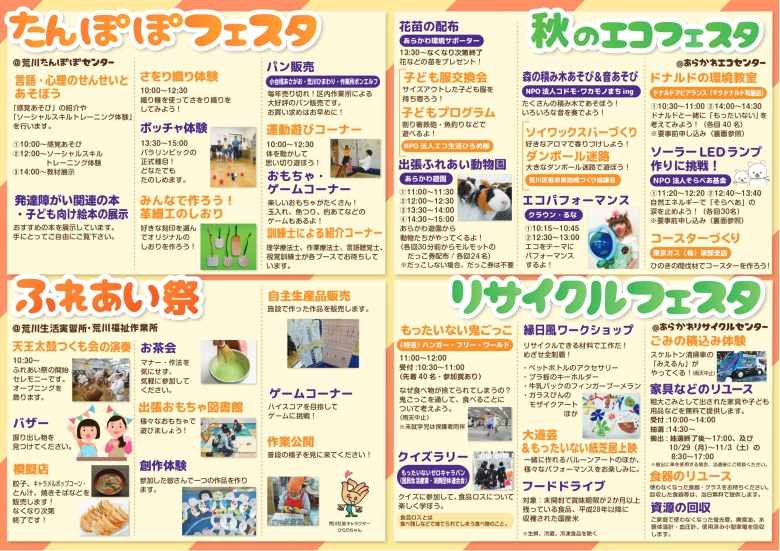 段ボール迷路、未就学児から楽しめるワークショップや森の積み木遊び&音あそび、あらかわ遊園からやってきた動物たちとふれ合いなど1日楽しめるイベント!花苗の配布は午後1時30分からなくなり次第終了です!
