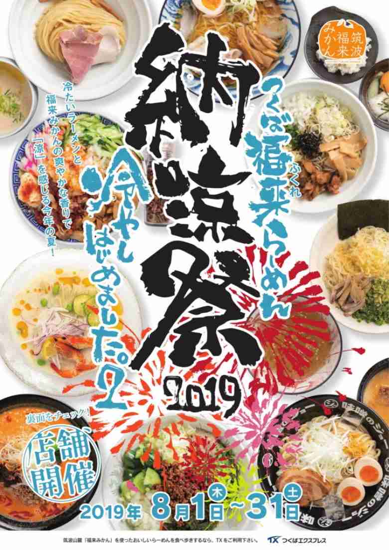 筑波山麓特産「福来(ふくれ)みかん」使用した各店オリジナルの福来らーめんを期間限定で展開する「つくば福来らーめん紀行」。今回は暑い食欲の落ちる「夏」を冷たく香り高く乗り切ろうと「冷やし」をテーマに8月1日~31日の期間で賛同店9店舗にて「福」の食べ歩きができます。