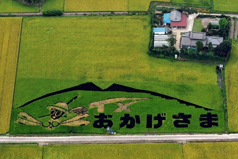 谷原三万石を象徴する、広大な田んぼに「紫稲」「黄稲」「白稲」「赤稲」などを使ってアートします。 これまで、「ありがとう」の文字や、つくばエクスプレスのTXロゴマークなどを表現しました。 秋にはTX車窓から色彩豊かな稲穂によるアートを楽しめます。
