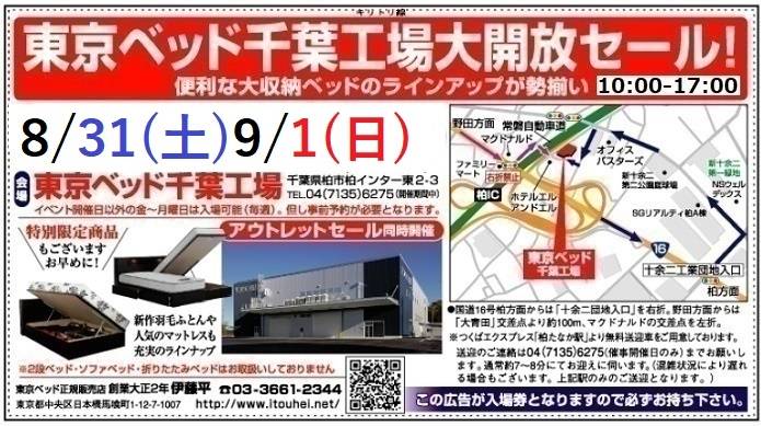 ★8/31(土)9/1(日)東京ベッド『60~10%OFF柏工場大開放セール!』