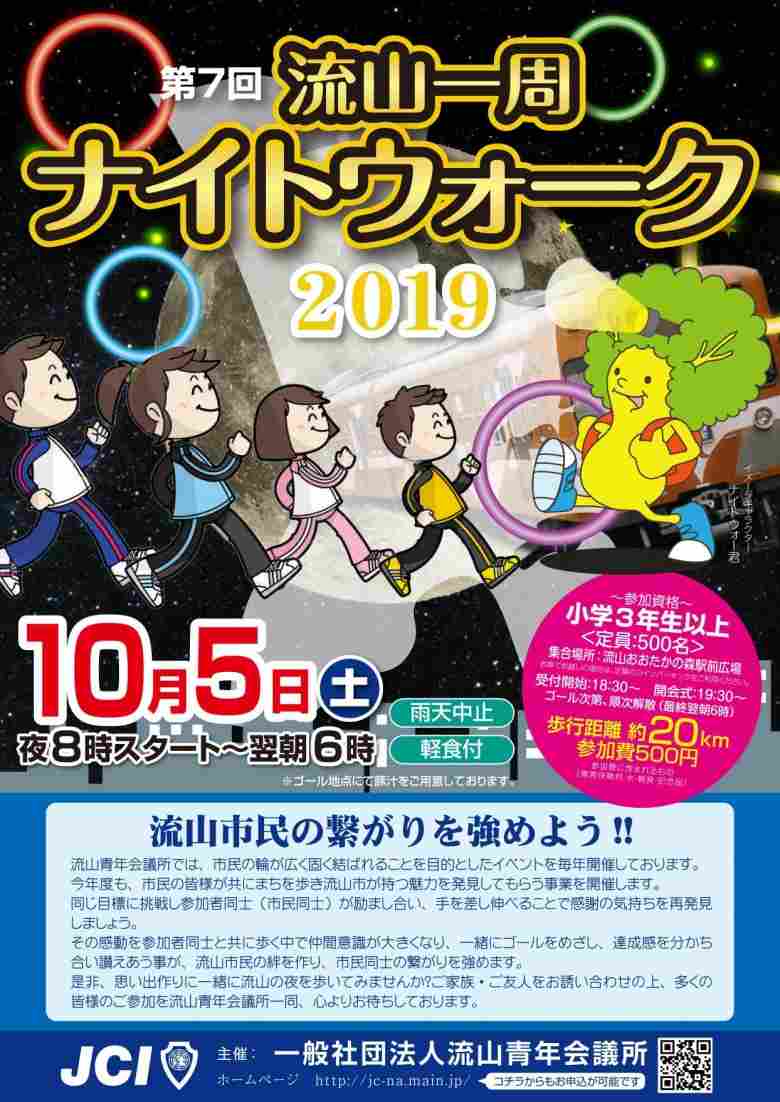 流山青年会議所では、市民の輪が広く固く結ばれる事を目的としたイベントを毎年開催しています。 今年度も、参加者の皆さまが共にまちを歩き流山市が持つ魅力を発見してもらう事業を開催します。同じ目標に挑戦し参加者同士が励まし合い手を差し伸べることで感謝の気持ちを再発見しましょう。その感動を共に歩く中で仲間意識が大きくなり、一緒にゴールをめざし、達成感を分かち合い讃えあう事が、私達が出来る「まちづくり」なのです。是非、思い出づくりに一緒に流山の夜を歩いてみませんか? ご家族・ご友人お誘い合わせの上、多くの皆様のご参加を流山青年会議所一同、心よりお待ちしております。
