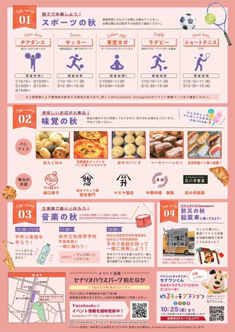 10月14日(月・祝) TX柏たなか駅すぐの「セナリオハウスパーク柏たなか」にて【柏たなかファミリーフェスタ】を開催いたします!スポーツ・食・音楽の融合型イベントでご家族皆様で1日中楽しめるイベントとなっております。そしてセナリオハウスブースでは《防災の秋》と題して、震度7クラスの地震体験ができる起震車が登場。もしもの備えにご家族皆さまで体験してみませんか。皆さまのご来場、お待ちしております!