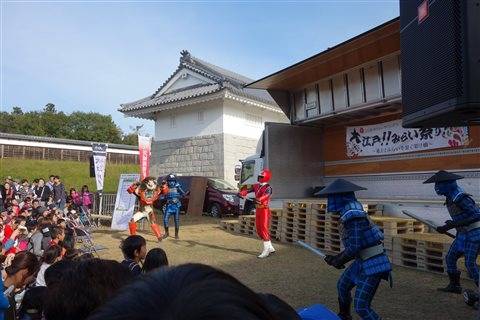 イベントはフリーマーケットや飲食ブースが立ち並び、今子ども達に大人気の特撮ヒーローショーや、ゆるキャラがたくさん登場したりと大賑わい。会場はとにかく人が多くてすごいことになっていました。うちの子は、ヒーローショーの「ニンニンジャー」と握手をして満足そうでしたが……。