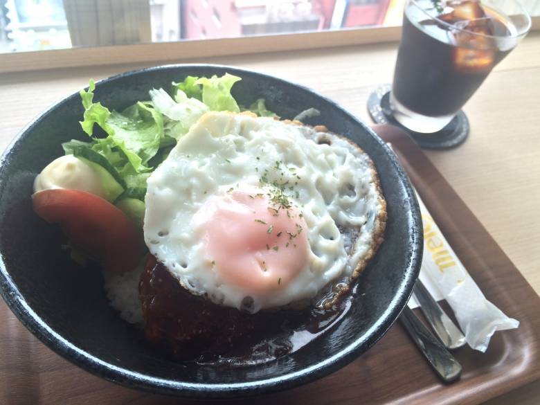 飲み物はもちろんフードメニューもあります。こちらはロコモコ丼。