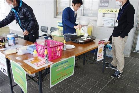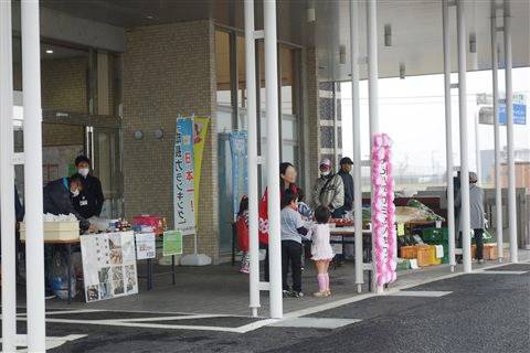 入口付近では、地元の朝採り新鮮野菜、手作りジャムや米粉のホットケーキなどが販売されていました。会場では各団体によるステージ発表、親子クッキング体験、作品展示会など、催しも盛りだくさん。(向かいの公園で開催予定だったポニー乗馬体験は、残念ながら雨天の為中止)