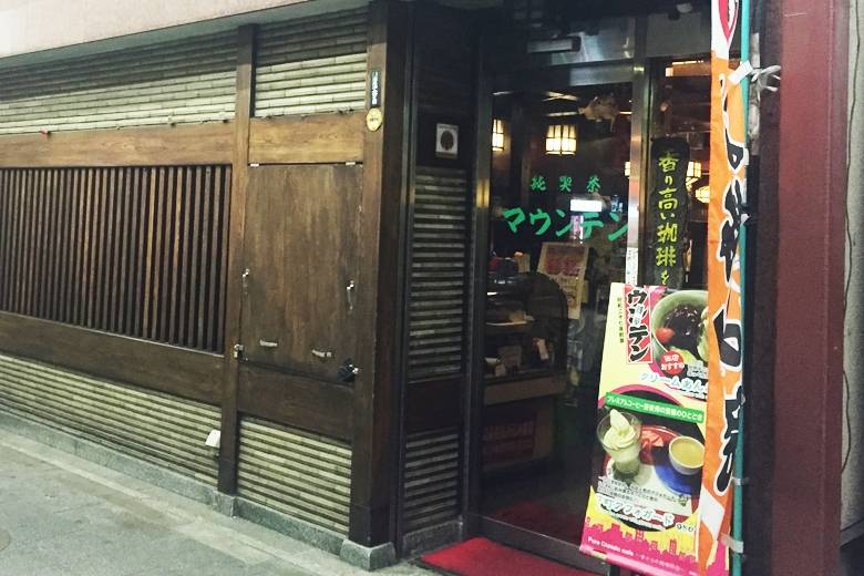 雷門通りにある「マウンテン」は、昭和23年創業。1階は戦後から変わらないという内観の純喫茶で、2階ではお好み焼きやもんじゃ焼きがいただけます。外観はとてもシンプルなのですが、のれんや看板でおすすめは何か一目瞭然。スカイツリーパフェでも有名なお店ですね。