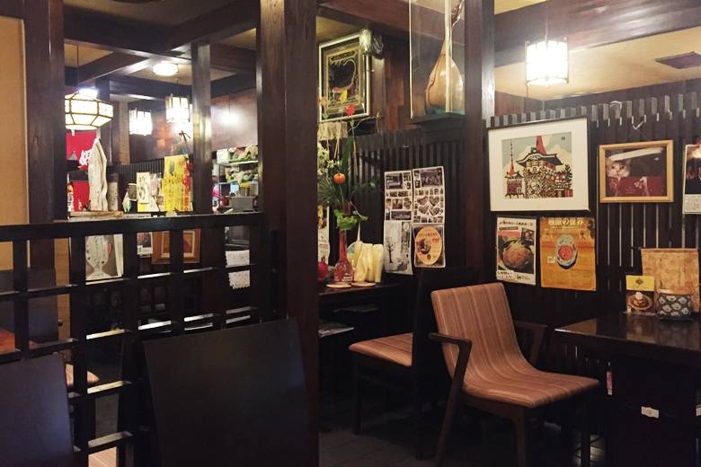 店内は、田舎のおばあちゃんの家にあったような古い置物もあれば、ヨーロッパ風のステンドグラスや、富士山ののれんなど、