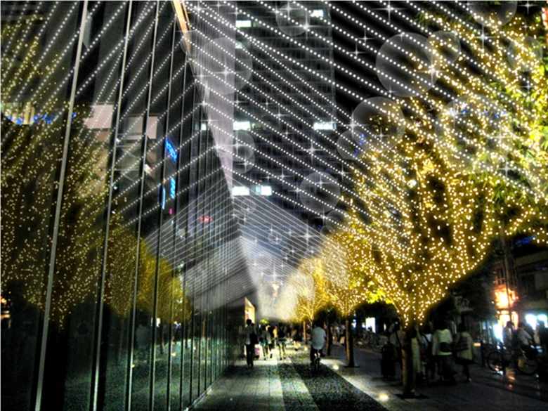 西側街路樹にはシャンパンゴールドを基調とした豪華絢爛なイルミネーション