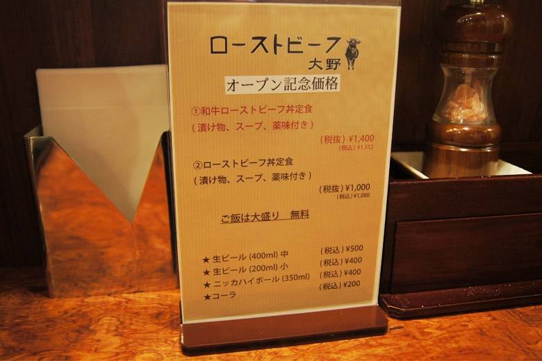 2015年10月15日(木)にオープンしたばかりという「ローストビーフ大野」に行ってきました。