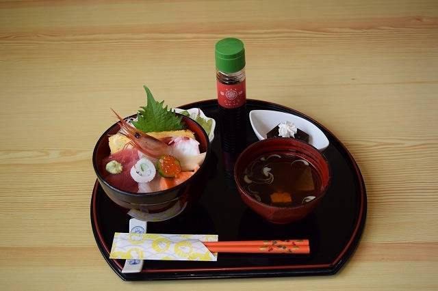 朝市で有名な石川県輪島の漁師さんと直接取引をしているそうで、朝獲れ魚介類が食べれるんです。ランチNO1メニューの海鮮丼には、その魚介類がてんこ盛りです♪