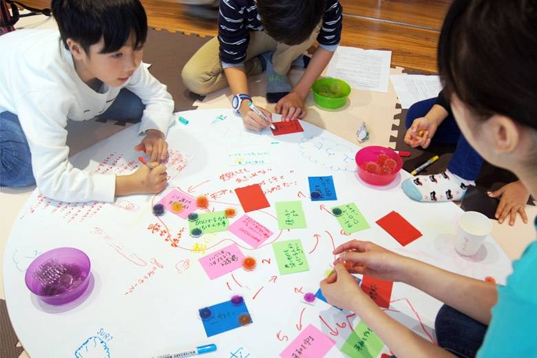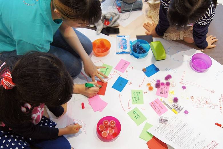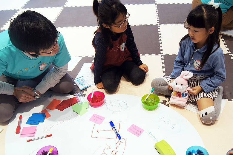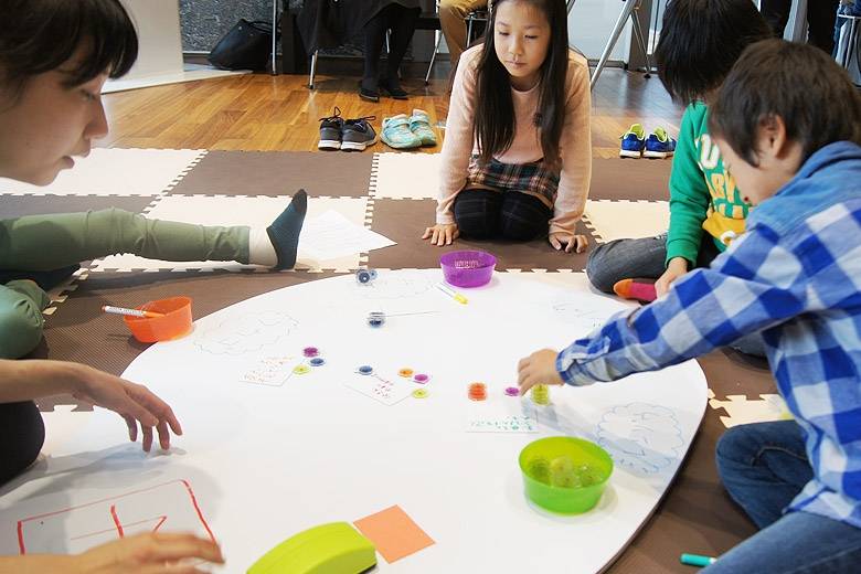 ワークショップは、考えることや他の子どもと話すことが楽しくなる、ある“しかけ”を使って進められました。